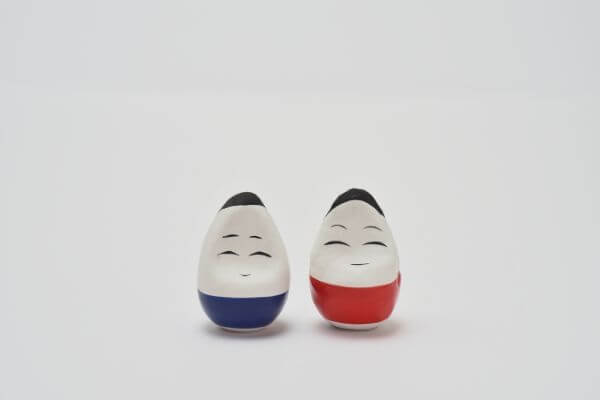 『赤べこ』を買いたいと思っていた私は、さざえ堂へ向かう途中の小さなお土産屋に立ち寄りました。台風の平日ということもあり、店内に客は見当たりません。赤べこを探していると伝えると、60代ほどの女性店員さんが棚へ案内してくれました。最終的に予定通り『赤べこ』と、予定外の『起き上がり小法師』を購入しました。